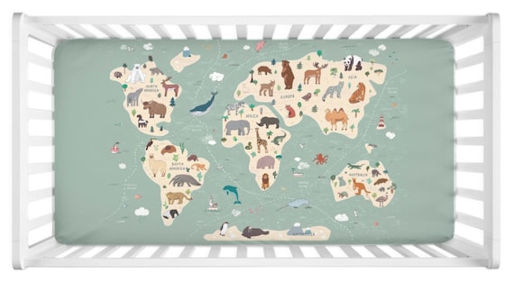 World Map Crib Sheet Minky or Jersey Our World Nursery Baby Etsy